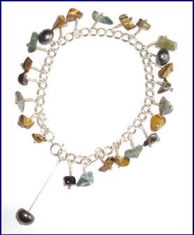 Materials: 925 sterling silver charm bracelet, 38mm head pins thick, 0.60mm wire; tigers eye, moss agate, cultured fresh water pearls