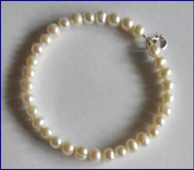 Materials: 925 sterling silver 0.40mm wire, 6mm bolt ring clasp, 5.5mm jump ring; cultured fresh water pearls