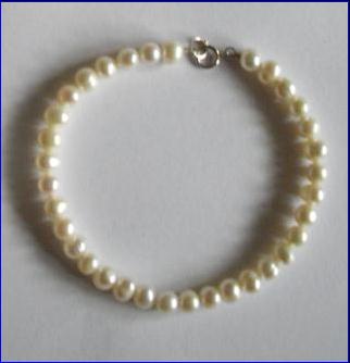 Materials: 925 sterling silver 0.40mm wire, 6mm bolt ring clasp, 5.5mm jump ring; cultured fresh water pearls