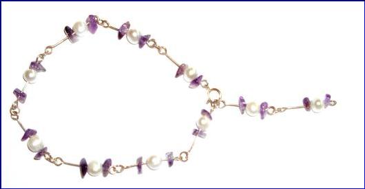 Materials: 925 sterling silver 0.60mm wire, 4mm jump ring, 6mm bolt ring clasp; cultured fresh water pearls, amethyst