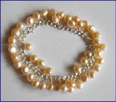 Materials: 925 sterling silver charm bracelet, 38mm headpins thick; cultured fresh water pearls