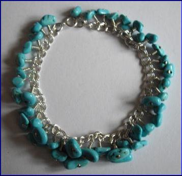 Materials: 925 sterling silver charm bracelet, 38mm head pins thick; turquoise