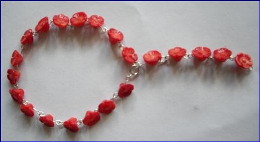 Materials: 925 sterling silver 0.60mm wire, 4mm jump ring, 6mm bolt ring clasp; coral