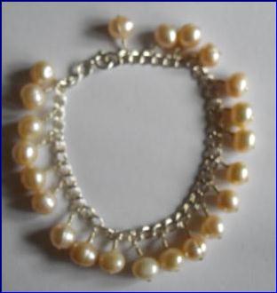 Materials: 925 sterling silver charm bracelet, 38mm head pins thick; cultured fresh water pearls
