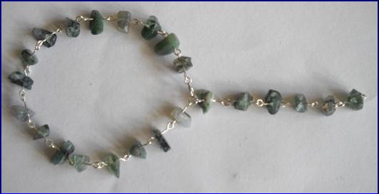 Materials: 925 sterling silver 0.60mm wire, 4mm jump ring, 6mm bolt ring clasp; moss agate