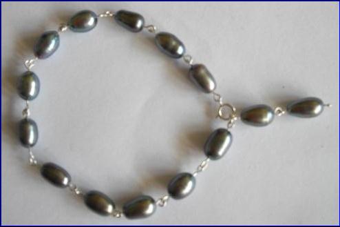 Materials: 925 sterling silver 0.60mm wire, 4mm jump ring, 6mm bolt ring clasp; cultured fresh water pearls