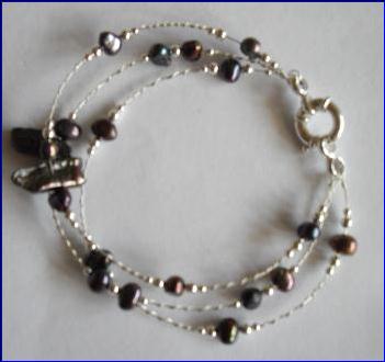 Materials: 925 sterling silver 0.40mm-0.60mm wire,2mm-3mm beads, 12mm bolt ring clasp; cultured fresh water pearls