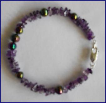 Materials: 925 sterling silver 0.60mm wire, 5.5mm jump ring, lobster claw clasp; amethyst, cultured fresh water pearls
