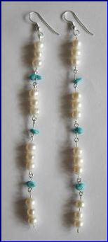 Materials: 925 sterling silver 0.40mm wire, pins, fish hooks earrings; cfw pearls, turquoise