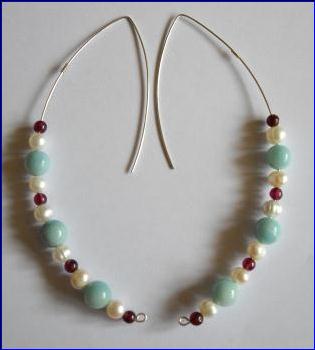 Materials: 925 sterling silver 0.80mm wire; cultured fresh water pearls, rose quartz, amazonite, garnet, cultured fresh water pearls