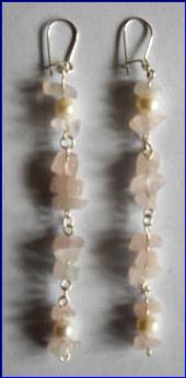 Materials: 925 sterling silver kidney wire, 0.60 mm wire, cultured fresh water pearls, rose quartz