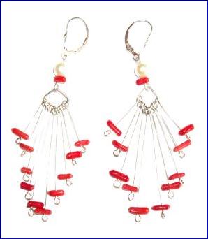Materials: 925 sterling silver lever back earrings, 0.60mm wire; corals, cultured fresh water pearls