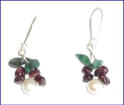 Materials: 925 sterling silver kidney wire, 0.40mm wire, cultured fresh water pearls, garnet, moss agate