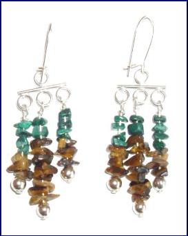 Materials: 925 sterling silver kidney wire, pins, spacer; 4mm beads, malachite, tigers eye