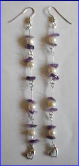 Materials: 925 sterling silver 0.60mm wire, fish hooks earring; cultured fresh water pearls, amethyst