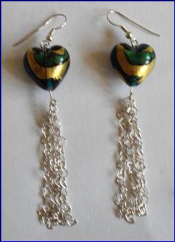 Materials: 925 sterling fish hooks earrings, 0.60mm wire, chains; glass beads with gold foil