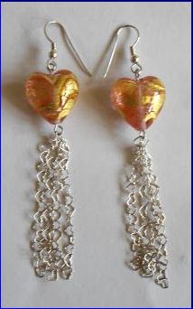 Materials: 925 sterling silver fish hooks earring, 0.60mm wire, chains; glass beads with gold foil