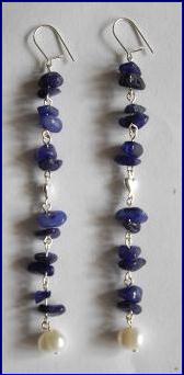 Materials: 925 sterling silver 0.60mm wire, kidney wire, heart connectors; blue agate, cultured fresh water pearls