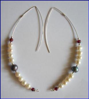 Materials: 925 sterling silver 0.25mm-0.80mm wire, 2mm beads; fresh water pearls garnet