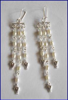 Materials: 925 sterling silver kidney wire, spacer, 0.60mm wire, heart connectors; cfw pearls