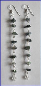 Materials: 925 sterling silver 0.60mm wire, pins, fish hooks earrings; moss agate, crackle crystal