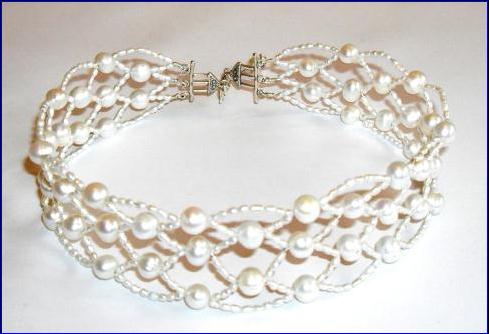 Materials: 925 sterling silver 0.40mm, 9mm bolt ring clasp, Parthenon spacer, 6mm open ring; cultured fresh water pearls.