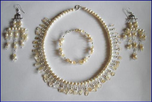 Materials: 925 sterling silver 0.60mm, 0.40mm wire, 3mm-4mm beads, 9mm bolt ring clasps, 5.5mm close jump rings, Parthenon spacer, fish hook earrings; cultured fresh water pearls, citrine
