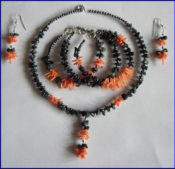 Materials: 925 sterling silver 0.40mmwire, 9mm bolt ring clasp, 5.5mm jump ring, 3mm beads, fish hook earrings; cultured fresh water pearls, corals, moss agate