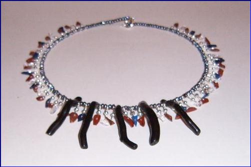 Materials: 925 sterling silver 0.40mm wire, 9mm bolt ring clasp, 6mm jump ring, 4mm beads; corals, cultured fresh water pearls, clear quartz, red jasper, lapis lazuli