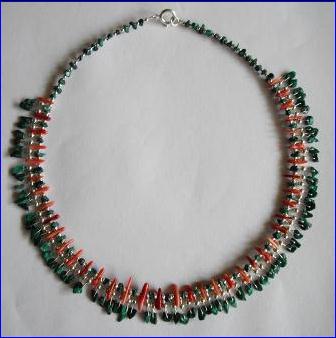 Materials: 925 sterling silver 0.60mm, 0.40mm wires, 2mm-3mm beads, 9mm bolt ring clasp,5.5mm jump ring; corals, malachite