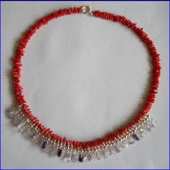 Materials; 925 sterling silver: 0.40mm wires, 9mm bolt ring clasp, 5.5mm jump ring, 2mm-3mm beads; coral, amethyst