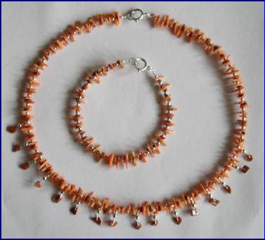 Materials: 925 sterling silver 0.40mm wire, 9mm bolt ring clasp, 5.5mm jump ring, 2mm-3mm beads; corals, gold stone