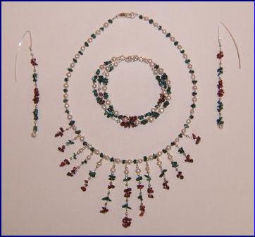 Materials: 925 sterling silver 0.40mm, 0.60mm wire,9mm- 12mm bolt ring clasps, 5.5mm jump ring, 2mm-3mm beads, lever back earrings; cultured fresh water pearls , malachite and rubylite
