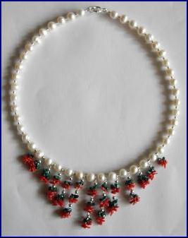 Materials: 925 sterling silver 0.40mm-0.60mm wire, 9mm bolt ring clasp, 5.5mm jump ring, 2mm-3mm beads; cultured fresh water pearls, malachite and corals
