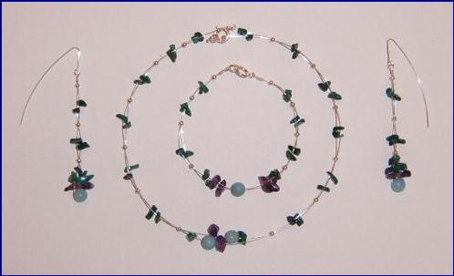 Materials: 925 sterling silver 0.60mm, 0.40mm wire, 3mm, 2mm beads, 9mm bolt ring clasps, 5.5mm close jump rings, malachite amazonite n amethyst
