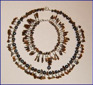 Materials:925 sterling silver - 0.60mm-0.40mm wire, 3mm beads, 9mm bolt ring clasp, 5.5mm jump ring; cultured fresh water pearls, tigers eye